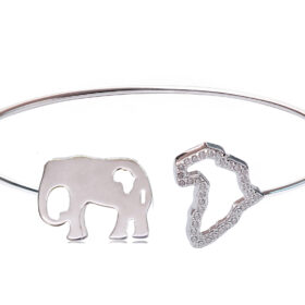 925 STERLING SILVER CUFF BRACELET ELEPHANT AND AFRICA