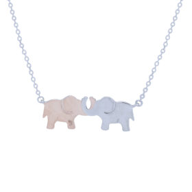 925 STERLING SILVER TWO TONE HOLDING ELEPHANTS NECKLACE