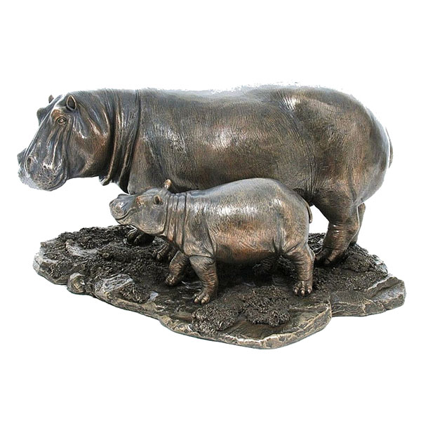 Height = 17cm Length = 31cm Kiboko = Hippo and baby Cold-cast bronze sculpture
